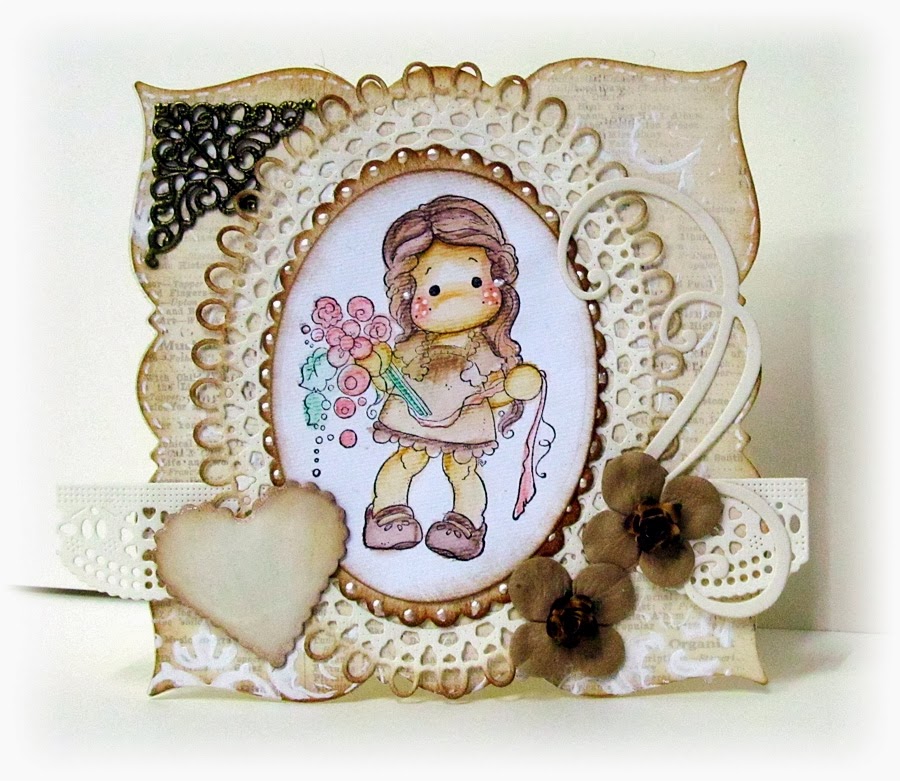 I fell in love with Copics a few years ago after taking a class at my local craft store and now can't get enough of colouring in all those gorgeous images that are out nowadays. You won't find many of my cards without a bit of ribbon (I probably have enough of it to start a market stall). My style tends to be lots of layers with lots of embellishments and if left to my own devices most of my cards would be pink! The only thing I don't have in my stash is an electronic die-cutting machine, but hopefully Santa is going to bring me one of those this year (I've been asking for the last 3 years but I obviously wasn't a good enough girl before!)